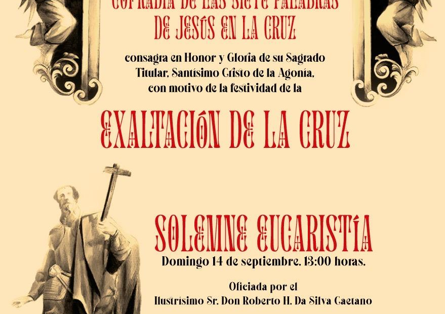 El domingo 14 de septiembre la Cofradía de las Siete Palabras de Jesús en la Cruz celebrara en honor y gloria de su Sagrado Titular, el Santísimo Cristo de la…