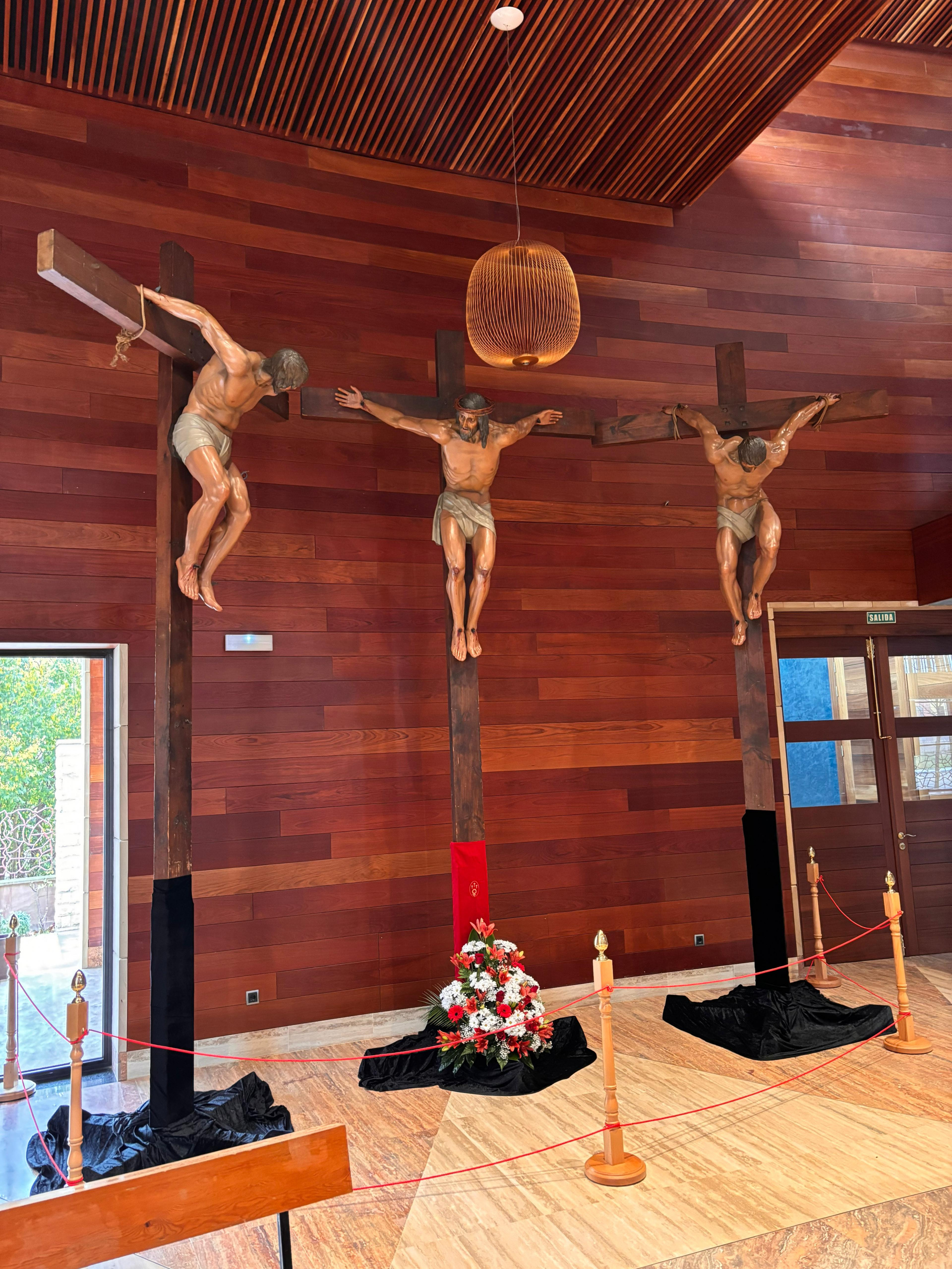 El conjunto escultórico de la Segunda Palabra, compuesto por su imagen titular, el Santísimo Cristo de la Misericordia, y las figuras de los dos ladrones, Dimas y Gestas, es una magnífica creación del destacado imaginero leonés, don Ángel Estrada. Su obra, de una imponente presencia, evoca recogimiento y devoción, convirtiéndose en el centro de todas las miradas de cofrades y feligreses, que conmovidos, acompañaron la ceremonia con gestos de reverencia y emoción.