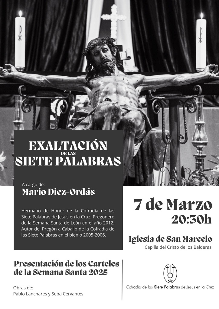 Os invitamos a la Exaltación de la Cofradía de las Siete Palabras de Jesús en la Cruz, que tendrá lugar el 7 de marzo de 2025 a las 20:30h en la Capilla del Santísimo Cristo de los Balderas (Iglesia de San Marcelo).