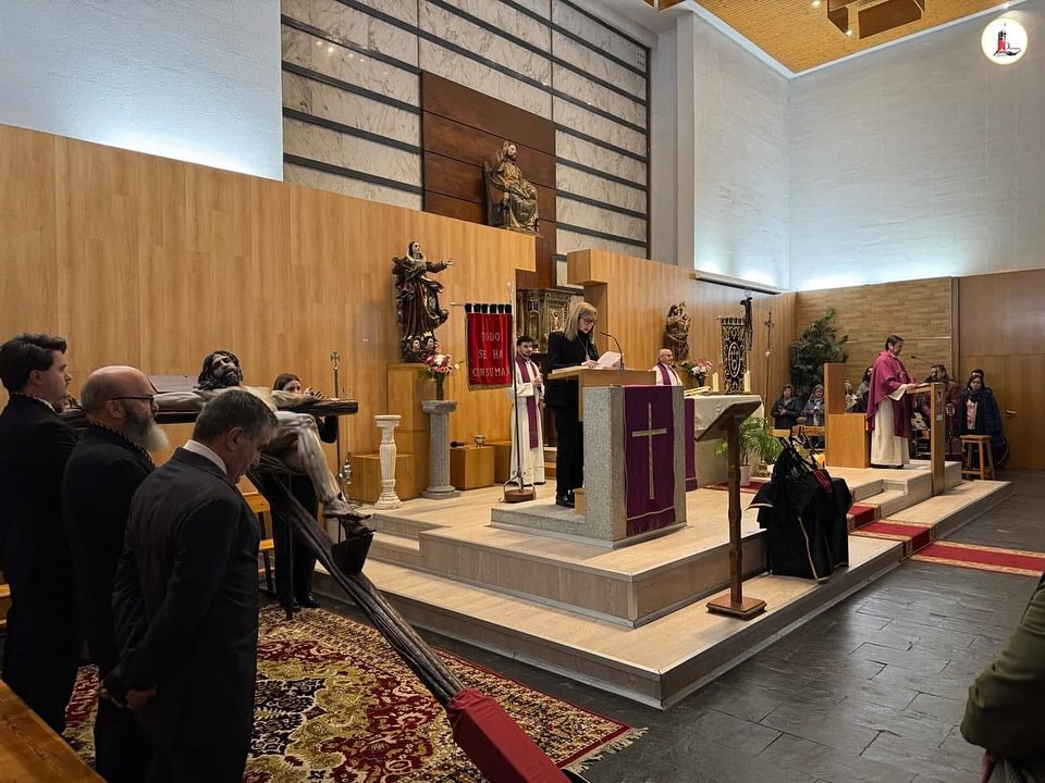 Tras la celebración eucarística, los fieles pudieron participar en el devoto besapié al Santísimo Cristo de la Sangre, que tuvo lugar en la Iglesia Parroquial El Salvador, ofreciendo un momento de oración y reflexión ante la sagrada imagen.