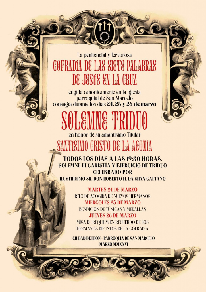 Martes 24, miércoles 25 y jueves 26, a las 19:30 horas Solemne Eucaristía y ejercicio de triduo celebrado por el Ilustrísimo Sr. Don Roberto H. da Silva Caetano.